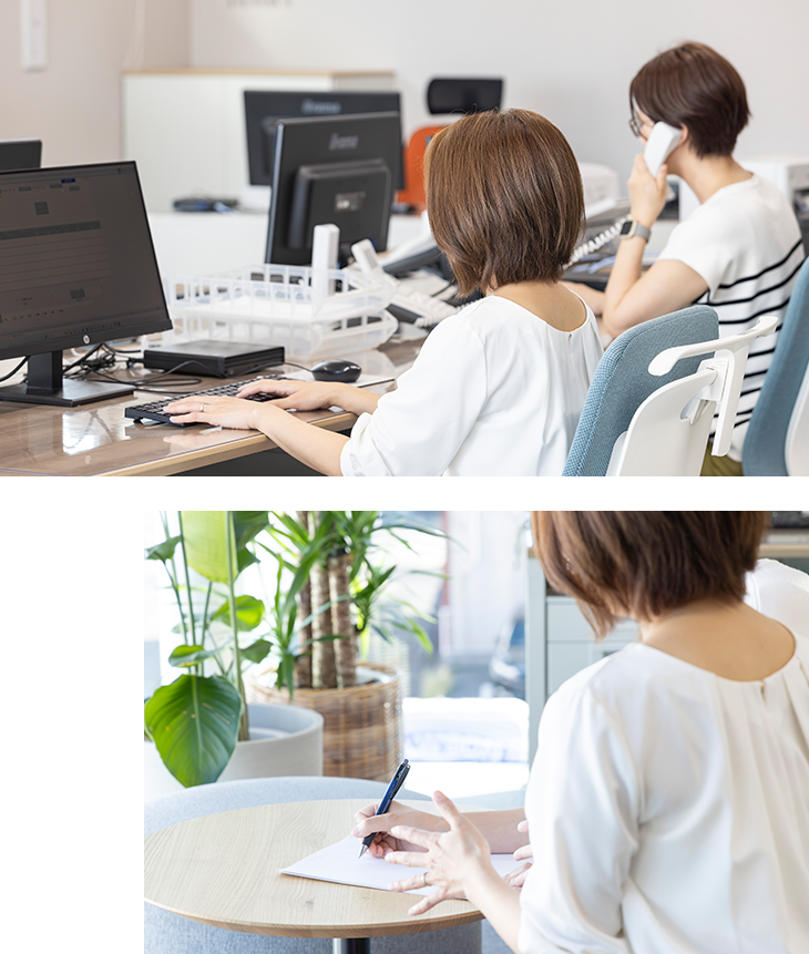 お客様と仕入れ先、社内をコミュニケーション力で繋ぐ“縁の下の力持ち”。会社の信頼を築きサポートする、なくてはならない存在です。