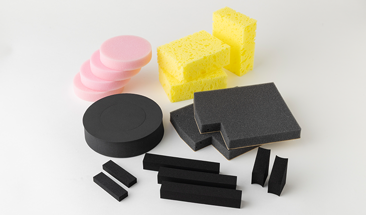 耐候性・耐水性・耐久性に優れ、弾力性が非常に高いゴムスポンジ。耐水性・断熱性に優れ、軽量で硬く丈夫なポリエチレンフォーム。加工の汎用性が高く、クッション性・吸音性が優れたウレタンフォーム。求められる機能・用途に合わせた素材選定から加工方法まで各種発泡体をご提案します。